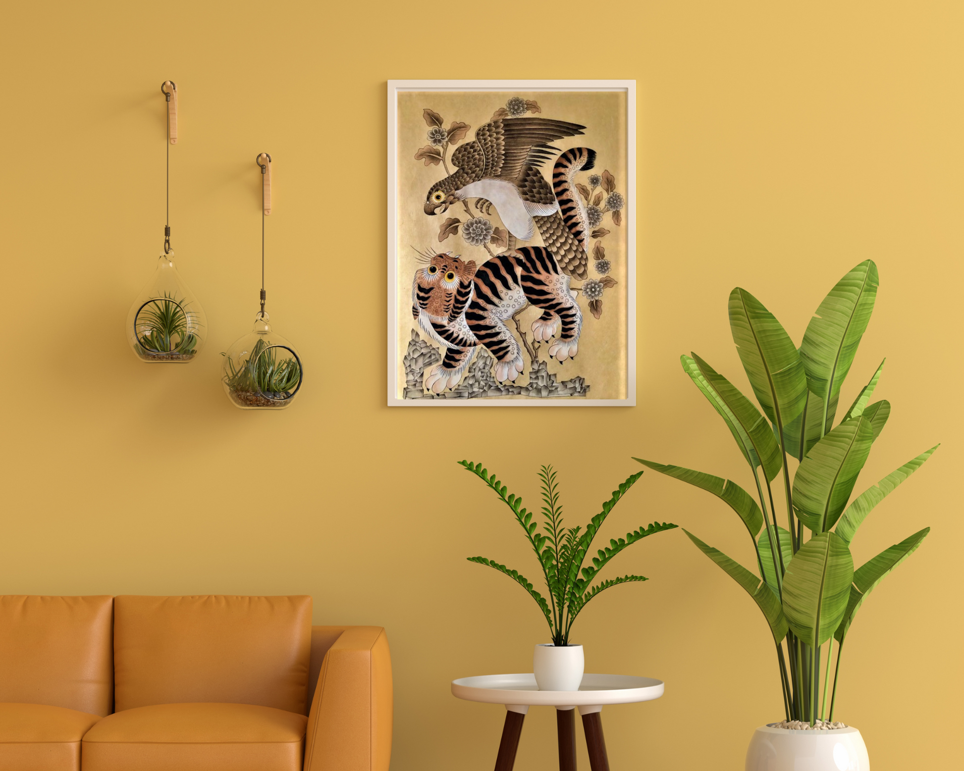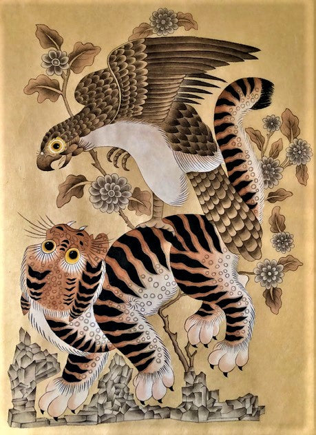 이 그림은 세가지 물 ,불, 바람 으로 부터의 재난을 막아 줄수있는 의미를 갖은 액막이 그림으로 부적의 힘을 갖은 그림으로 여겨지는 그림이다